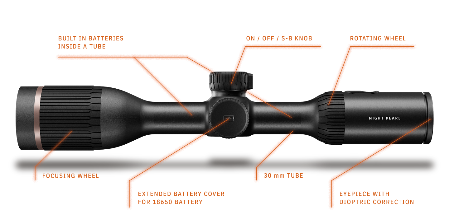 The new Night Pearl HARPIA thermal imaging riflescope, with a main tube with a diameter of 30mm. HARPIA 50 PRO model uses 384x288px, 12μm thermal imaging sensor with a NETD lower than 20mK, which offer a maximum sharp and contrast image. HARPIA 50 PRO is equipped with 50mm objective lens. An innovative rotating wheel is used for operation, which combines the control elements of a digital device with classic control based on the ergonomics of standard daytime riflescopes. Night Pearl HARPIA with replaceable 18500/18650 battery will extend the hunting time to more than 12 hours. And thanks to fast charging, it is ready for the next job in just 3 hours!