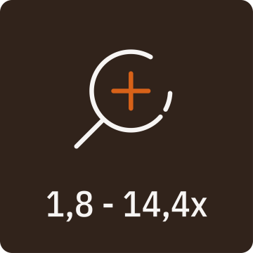 | Celkové zvětšení | 1,8 - 14,4x |