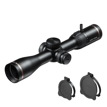 Reticles in the second focal plane. With illuminated dot/cross in the center of the reticle with 6 brightness levels.