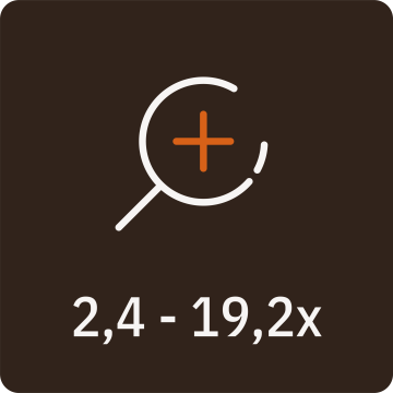 | Magnification (total range) | 2,4 - 19,2x |